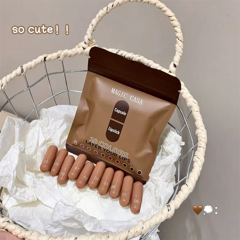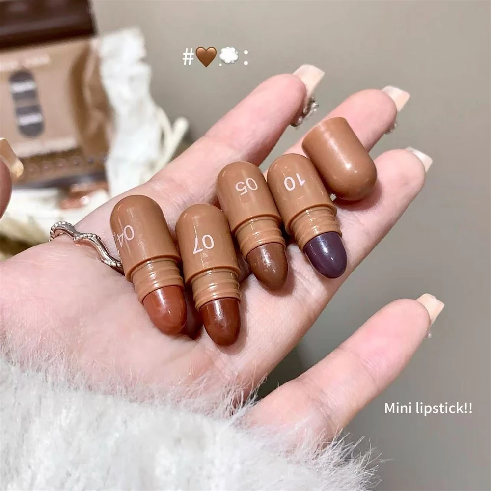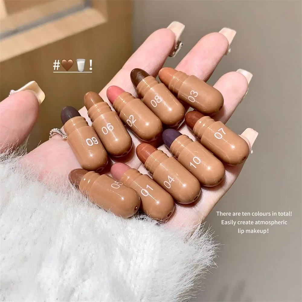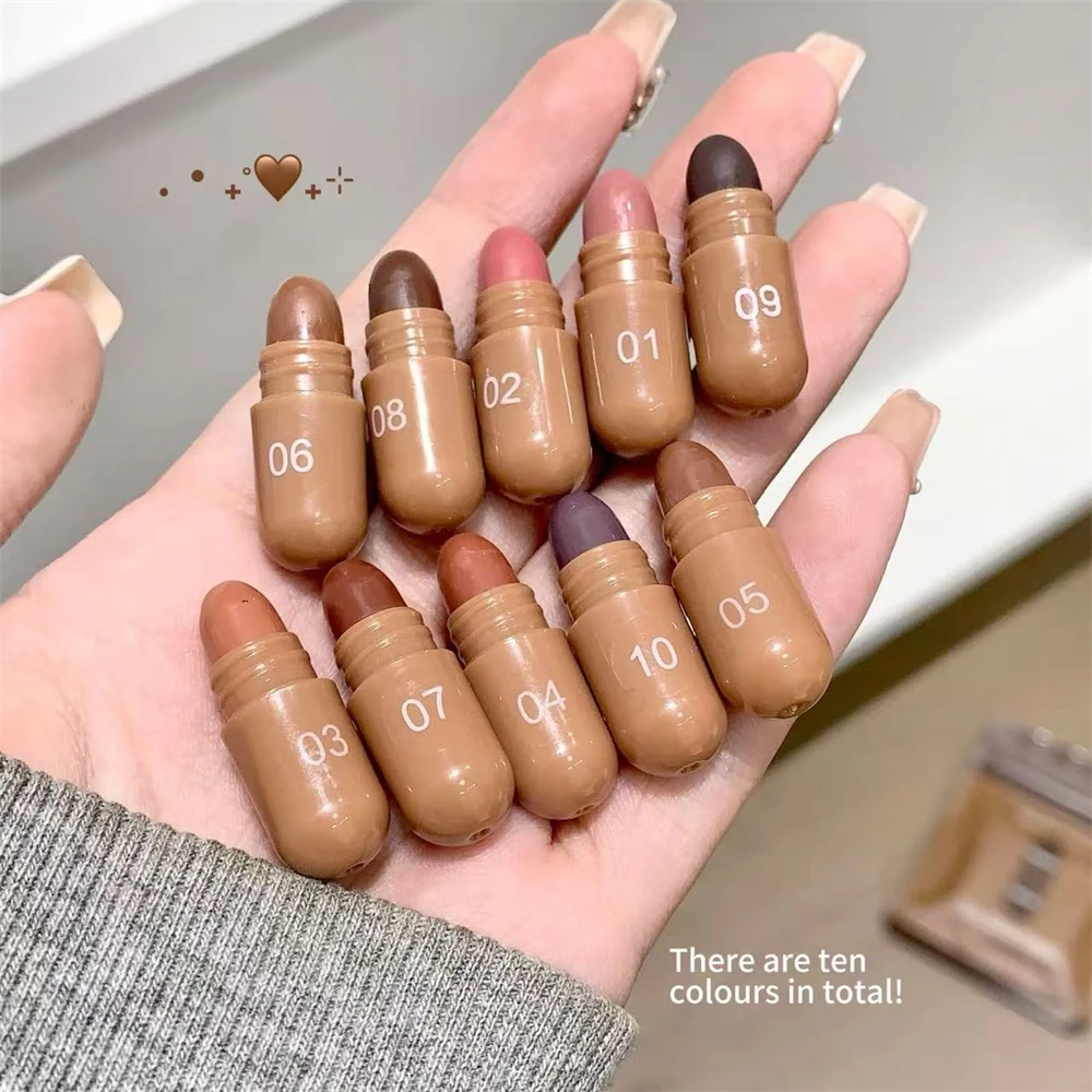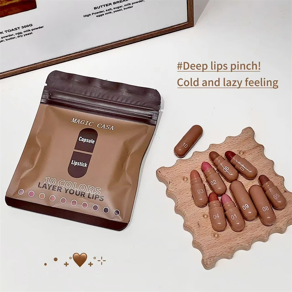 10 Color Smooth Brown Toned Capsule Lipstick Set Lasting Matte Velvet Mini Lip Balm Smudge Proof Highly Pigment Lip Makeup Kit