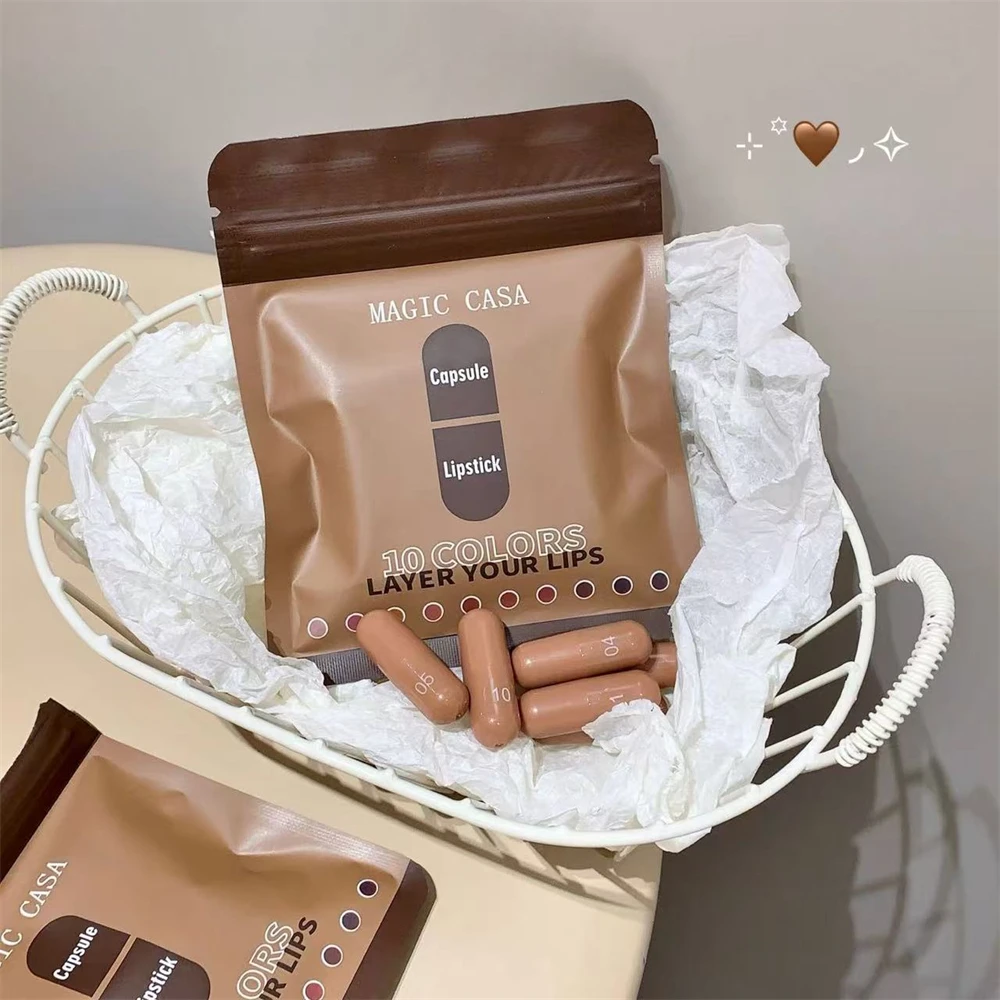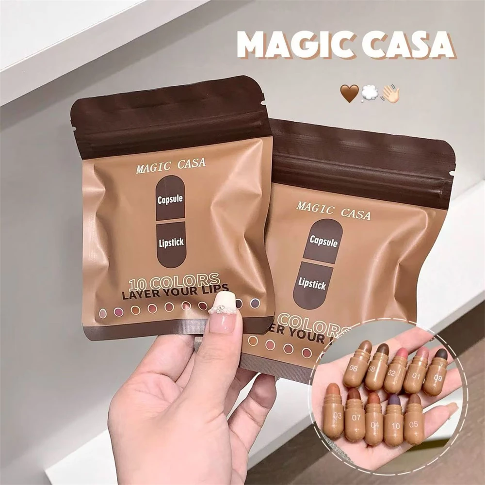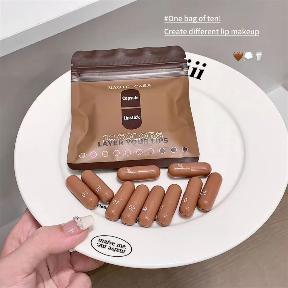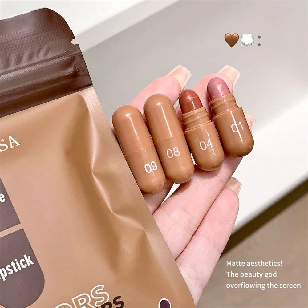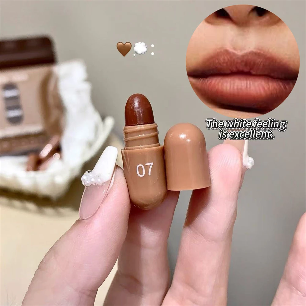 10 Color Smooth Brown Toned Capsule Lipstick Set Lasting Matte Velvet Mini Lip Balm Smudge Proof Highly Pigment Lip Makeup Kit