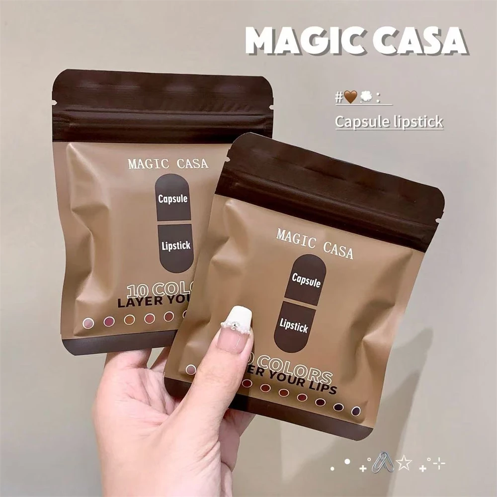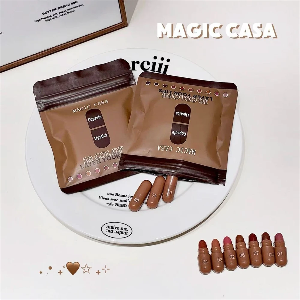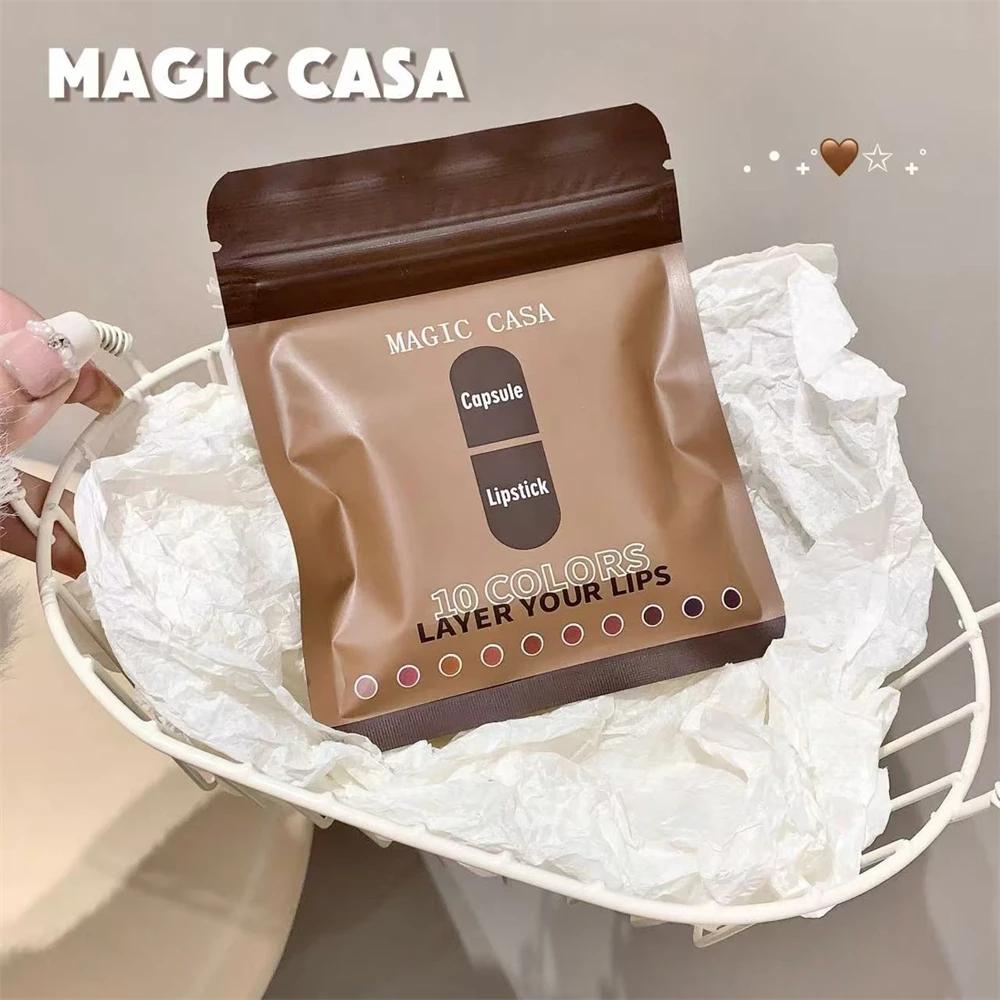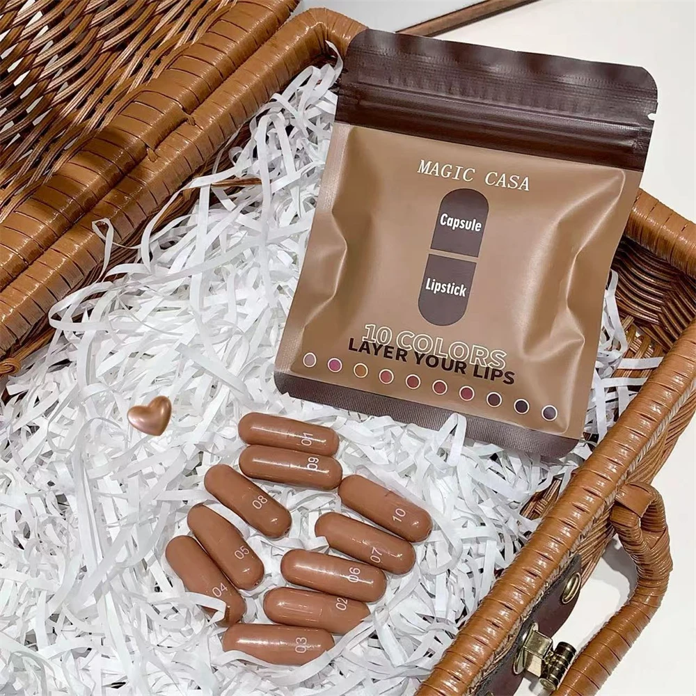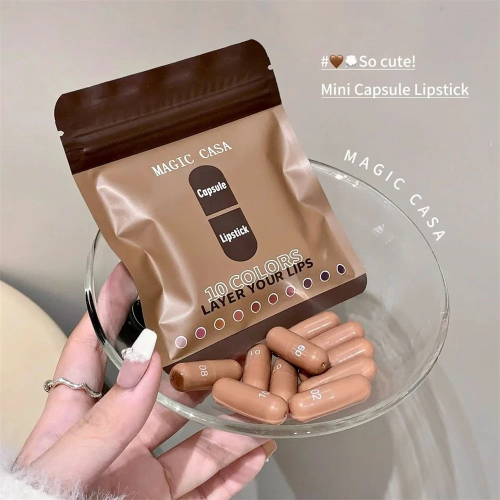 10 Color Smooth Brown Toned Capsule Lipstick Set Lasting Matte Velvet Mini Lip Balm Smudge Proof Highly Pigment Lip Makeup Kit
