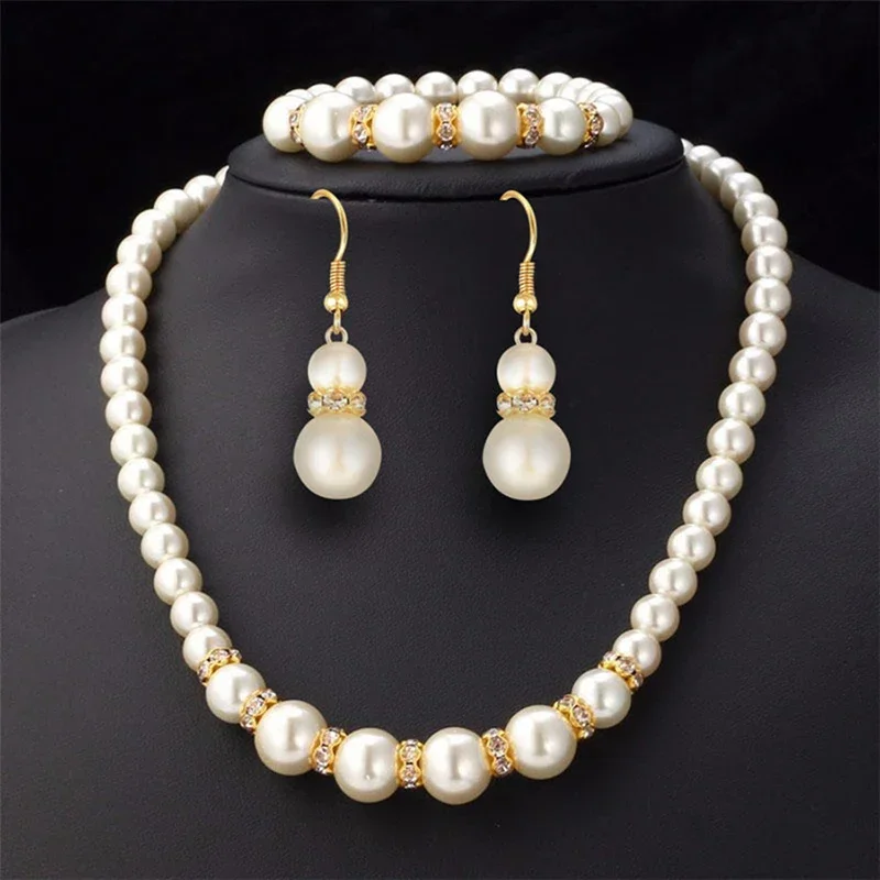 Be the first to review “3 In1 Set Elegant Simulated Pearl Necklace Earrings Bracelet Long Necklace Women Bridal Wedding Jewelry Gift Beautiful Jewelries” Cancel reply