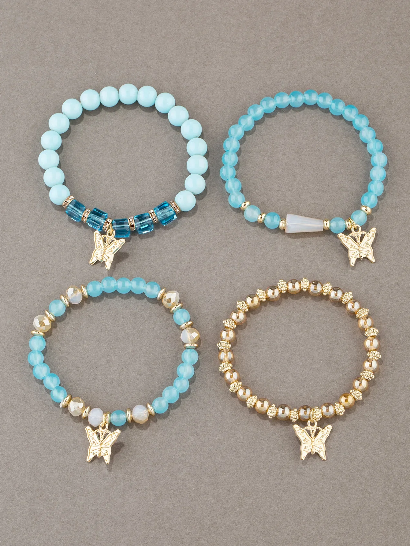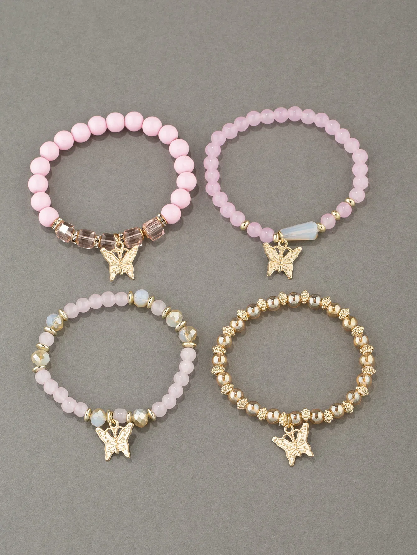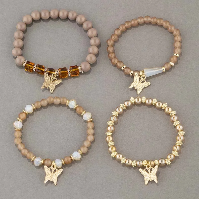 4Pcs Trendy Butterfly Beaded Bracelet Set For Women Pink Acrylic Beads Elastic Chain Bangle Female Bohemian Party Jewelry Gift