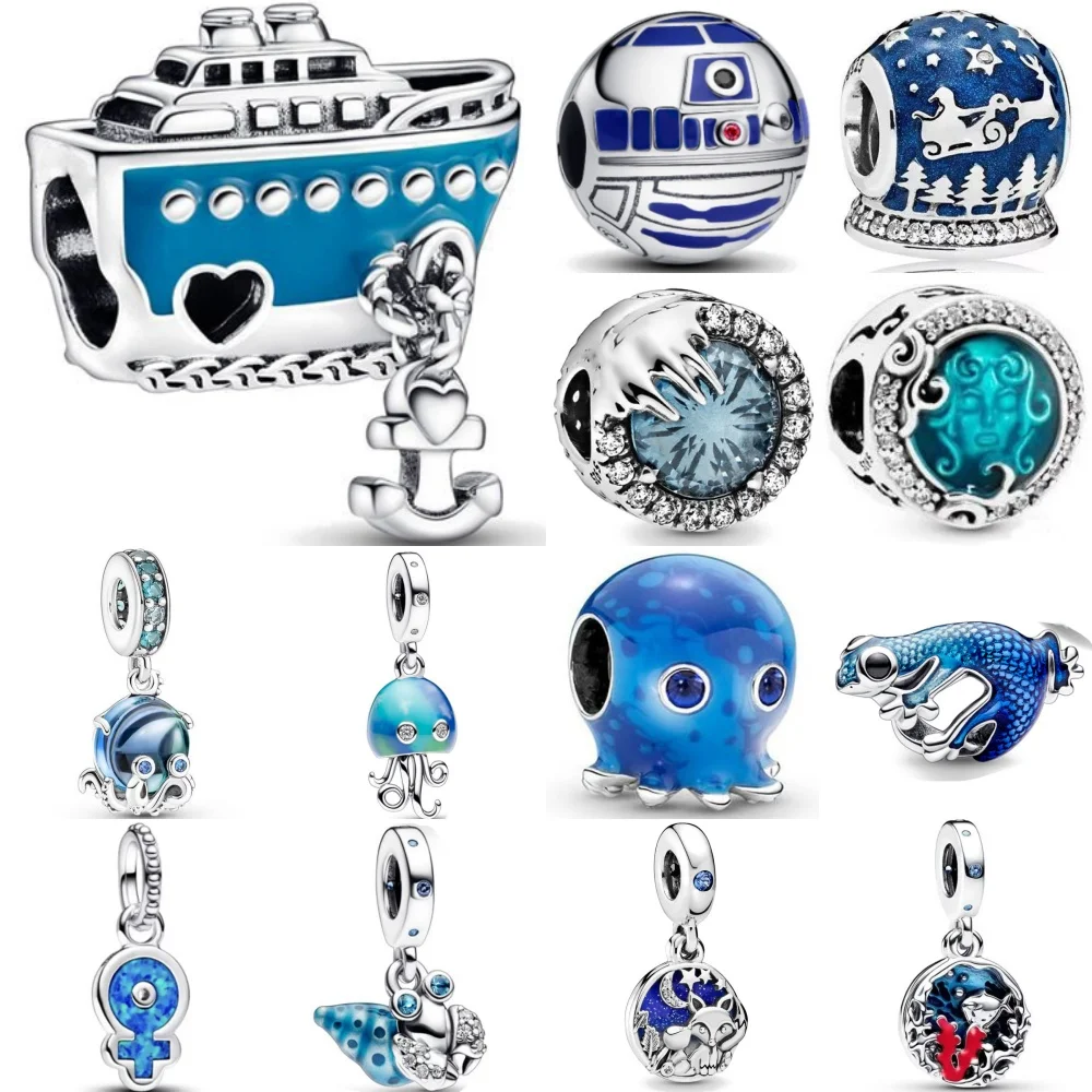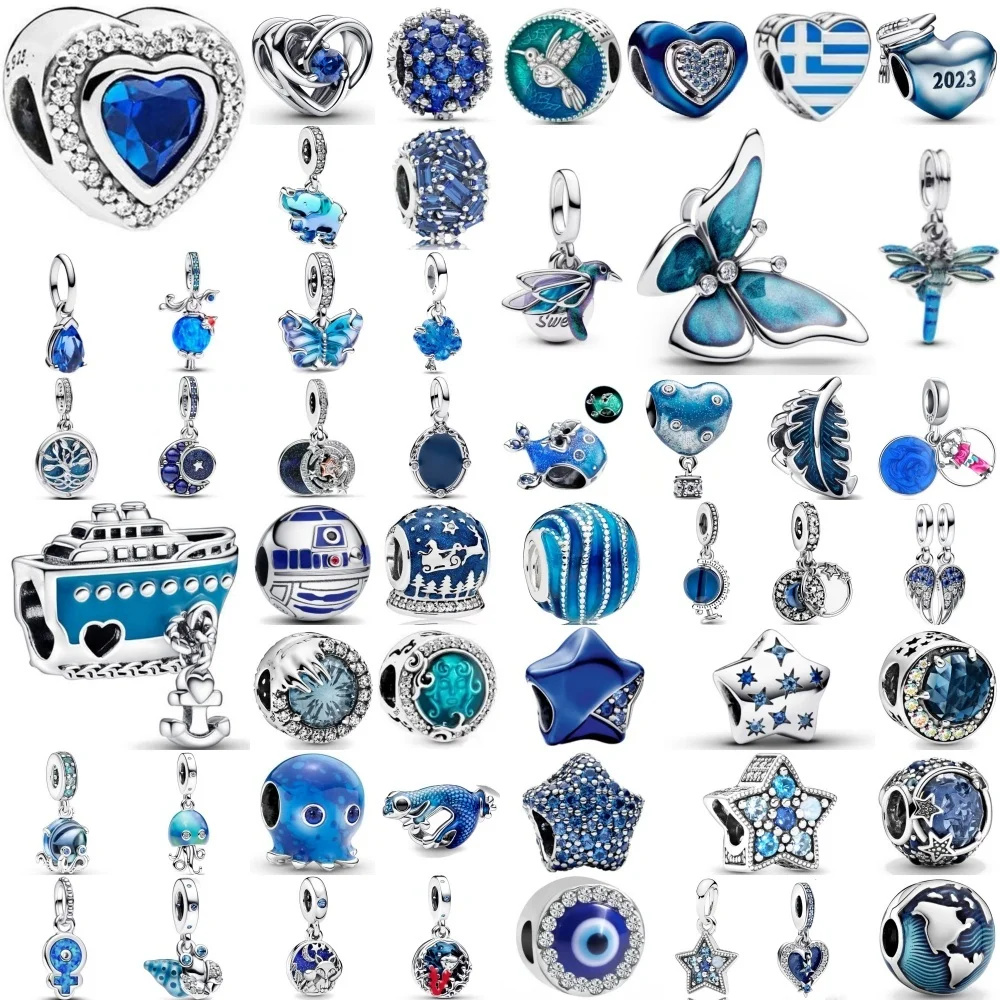 925 Silver Blue Butterfly Dragonfly Pentagram Feather Pendant Beads Suitable for European Original Bracelet DIY ExquisiteJewelry