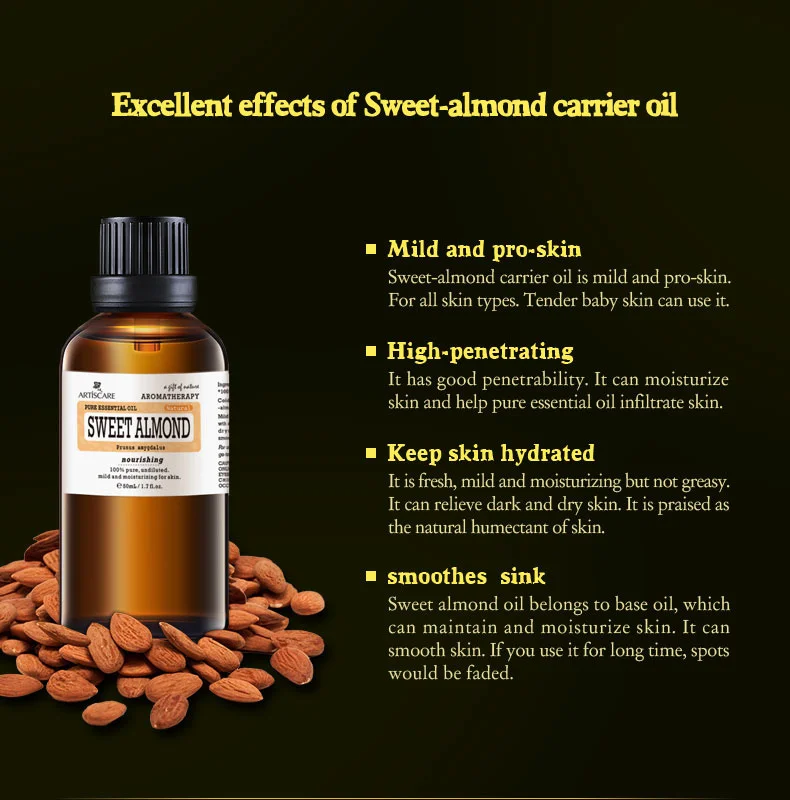ARTISCARE Natural Jojoba Oil Rose hip Oil Sweet Almond Base Oil for Moisturizing Wrinkles Skin Care Massage Essential Oil