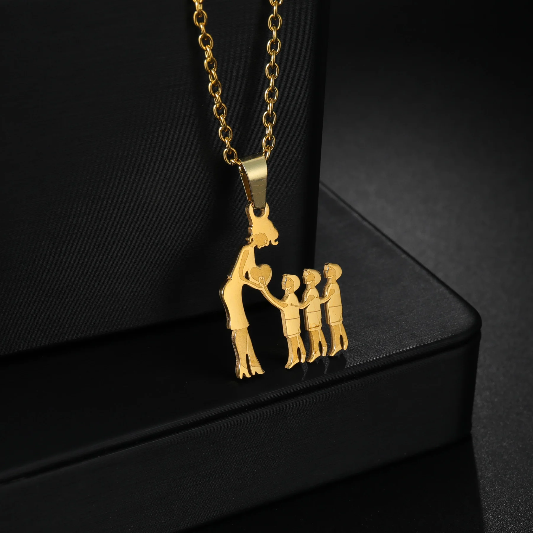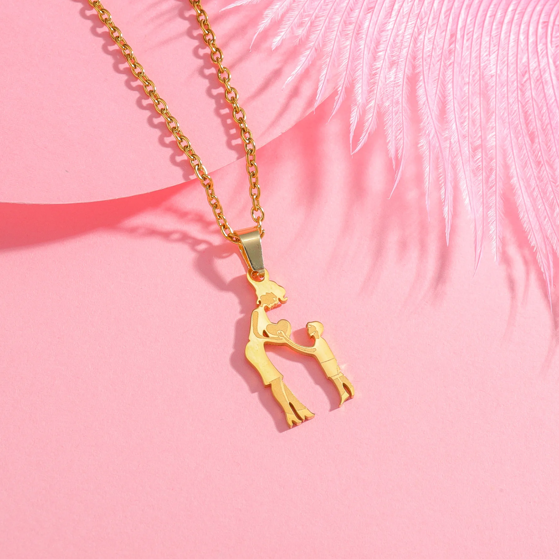 Girls Boy Children Stainless Steel Family Necklaces Mama Pendants Necklace Birthday Gifts For Women Jewelry Mother’s Day Jewelry