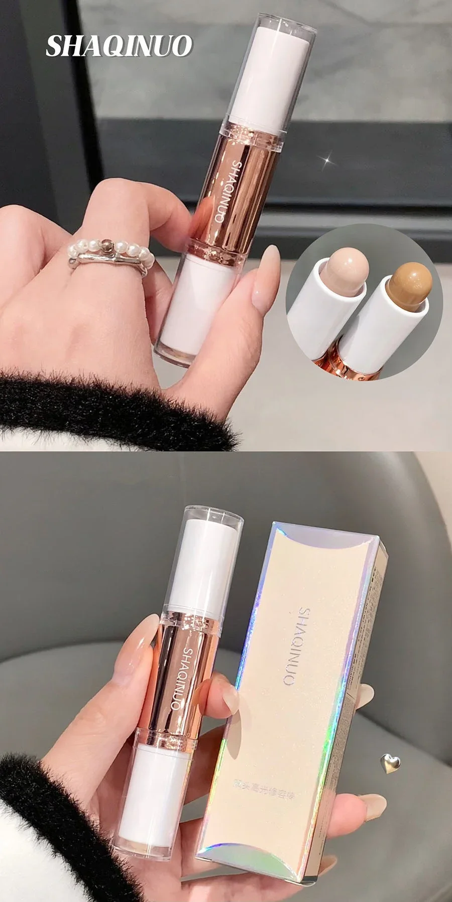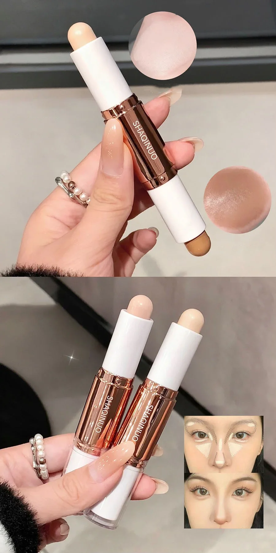 Bronzer & Highlighter, Double end highlight stick |