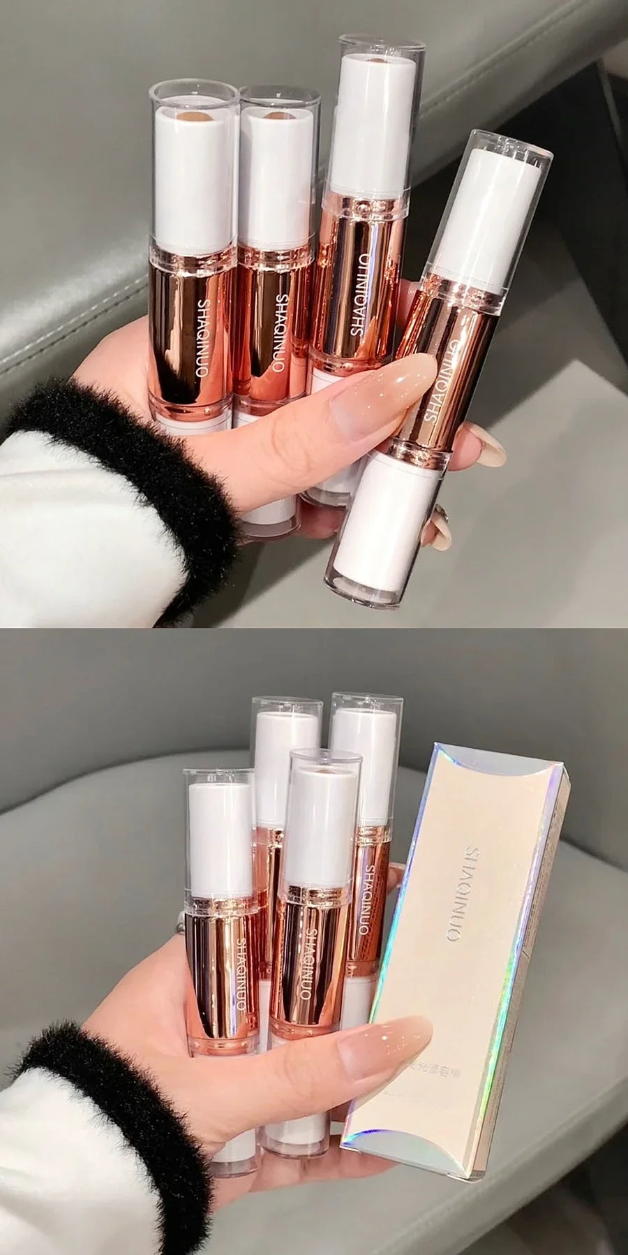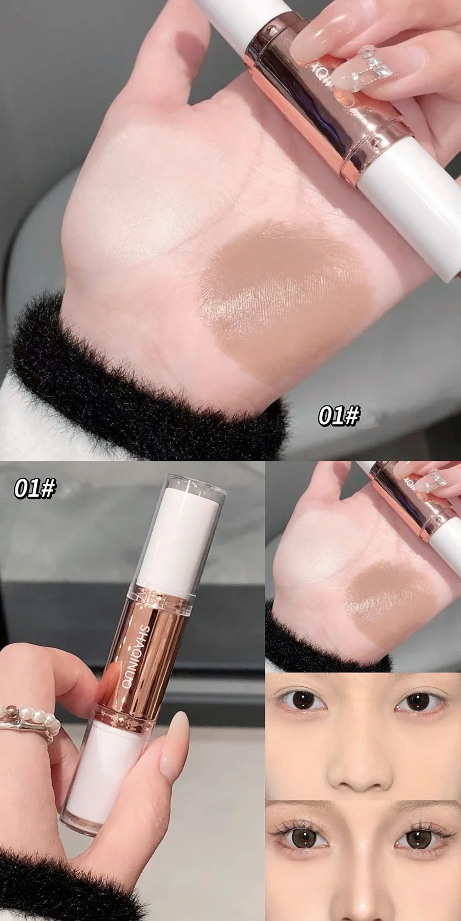Double headed Sculpting Pen for Facial Contouring Cream pen texture! Smooth and easy to drawThe importance of groomingCreating a 3D silhouette with dual colors of light and darkShaping three-dimensional facial features01#Light gray brown 02#Dark gray brown
