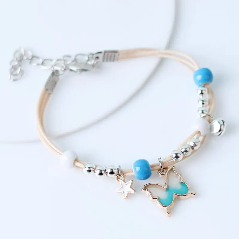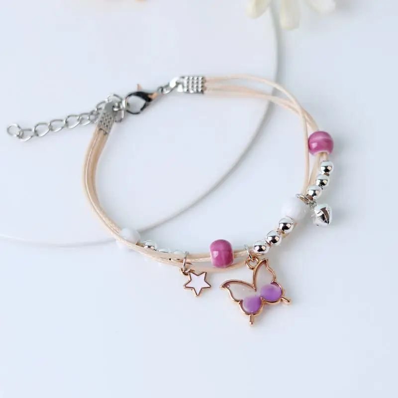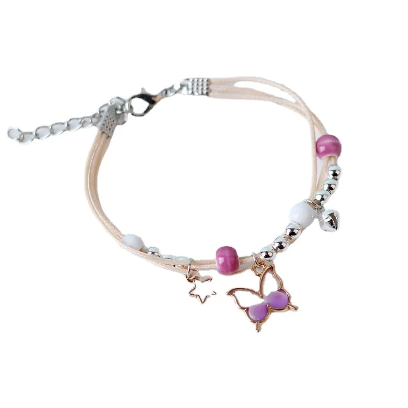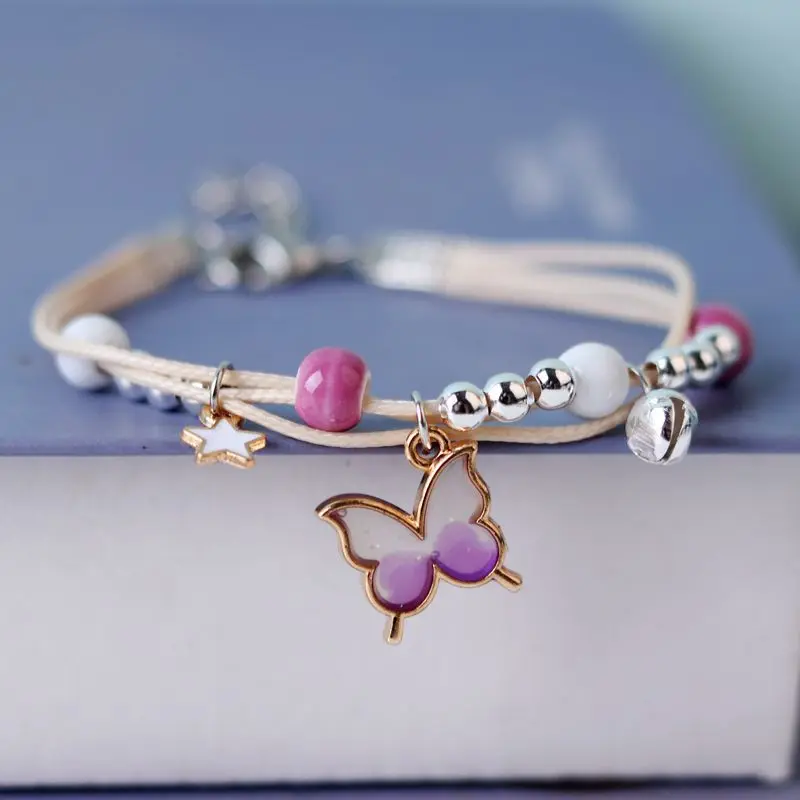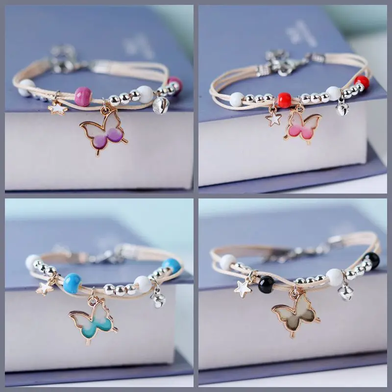 Kpop Cute Colorful Butterfly Bracelet for Women Girl Fashion Hand-woven Star Bell Beads Flower Pendant Bracelet Sister’s Jewelry