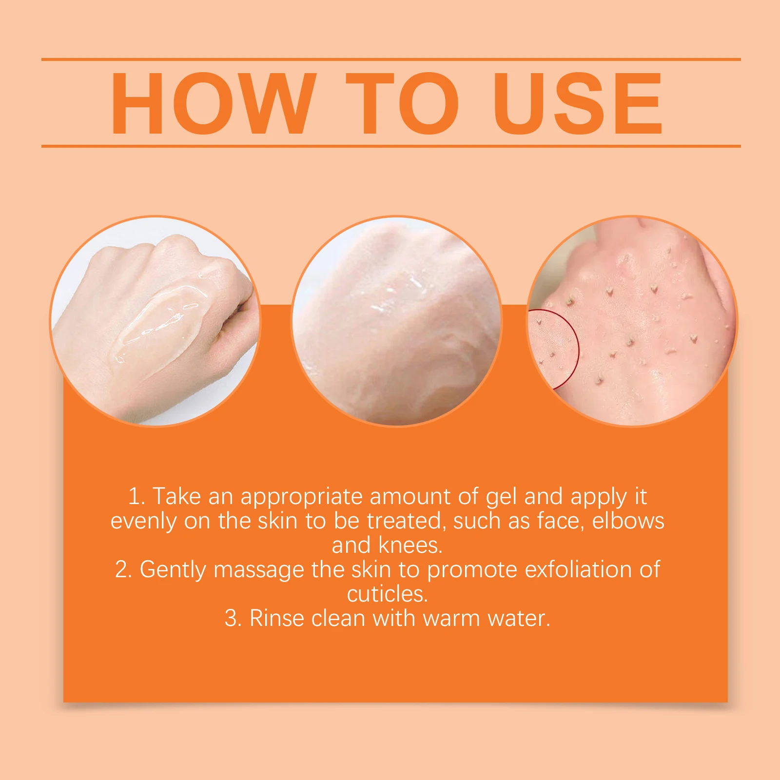 1. Take an appropriate amount of gel and apply it evenly on the skin to be treated, such as face, elbows and knees.