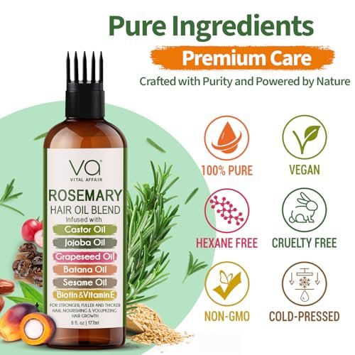 VITAL AFFAIR Blend Of Pure Rosemary Oil For Hair Growth With Castor, Batana, Jojoba Oil-Infused With Biotin & Vitamin E-Blend of Effective Hair Oils for Hair Growth-Strengthening Treatment 6 Fl Oz : Beauty & Personal Care