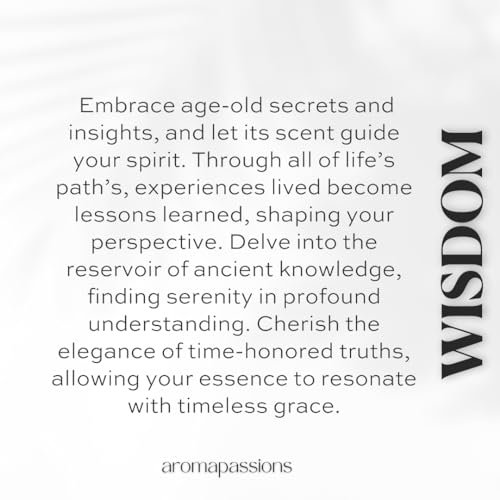 About this item WISDOM || Embrace age-old secrets and insights, and let its scent guide your spirit. Through all of life’s path’s, experiences lived become lessons learned, shaping your perspective. Delve into the reservoir of ancient knowledge, finding serenity in profound understanding. Cherish the elegance of time-honored truths, allowing your essence to resonate with timeless grace. Our WISDOM formula inspired by Dptque Philosykos perfume for men and women is beautifully crafted by expert perfumers and aromatherapist from around the world. Scented using Fig Leaf, Fig, Green Notes, Coconut, Fig Tree, Woody Notes and Cedar essential oils. AFFORDABILITY || How do we keep out prices low, while at the same time provide the highest-quality, long-lasting premium fragrances? Simple Answer, low marketing costs, no celebrity endorsements, and simple eco-friendly packaging. We never sacrifice quality or cut corners. Ever. INGREDIENTS || AromaPassions Perfumes are crafted using natural organic and kosher ethanol alcohol made from organically farmed sugarcanes. We use the highest quality natural essential oils and ingredients whenever possible, sourced from around the globe. We use a higher concentration of fragrance than most famous perfume brands, giving you that long-lasting aroma. All our products are paraben, sulfate, phthalate free, vegan, cruelty free and 100% non-toxic. So indulge guilt-free. EXTRAIT DE PARFUM || Highest Concentration of Perfume Oils with over 20% Aromatic Compounds | Guaranteed to last over 8 hours.